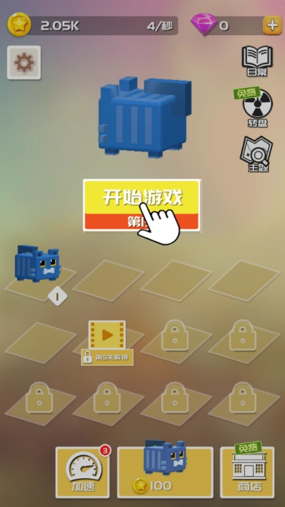 当你打开游戏,首先映入眼帘的便是这些可爱的萌趣生物,它们有着方块式的像素造型,实在是惹人喜爱。在这个界面中,你可以通过购买来增加小动物的数量。而且,相同的动物之间能够两两合成,从而出现新的动物品种。不仅如此,合成的等级越高,所获得的离线收益也就越大。快来努力解锁更多方块,合成更高等级的小动物吧!
