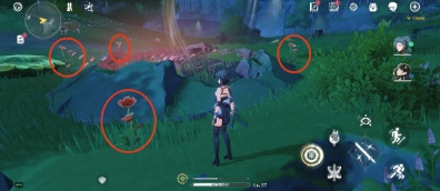11、上坡之后,能看到4朵可供采集的,随后继续朝着箭头所指的方向前行。