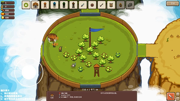 6、我们一开始仅有一块初始领地,得先点击左上方的【建造仓库】图标,工人们才会开始劳作。