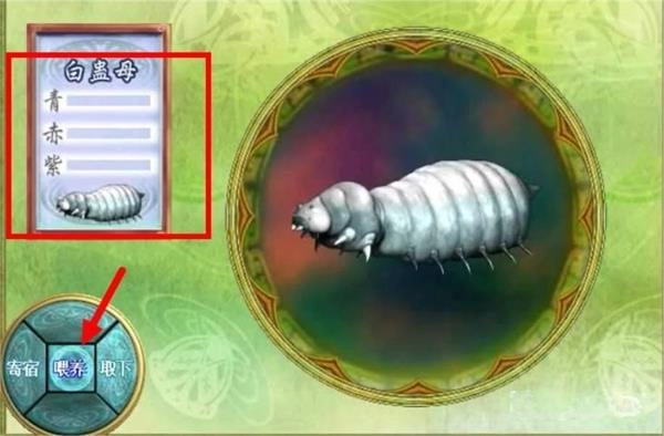 3、能够瞧见,红框里面的便是需要饲养的蛊,在下方通过选择喂养的方式,能够更好地养蛊。