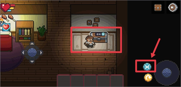 2、接着按照剧情的推进来完成所需任务,利用左下角轮盘控制角色移动。右侧轮盘是工具,黄色区域代表翻滚。