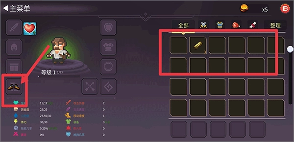 5、当你获得道具后,可点击右上角的背包按钮,进入背包详情界面,接着点击道具,将其装备到角色身上。