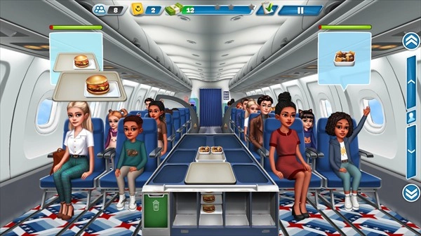 3、游戏设有制餐区与客舱区。玩家需在制餐区备好所有食物,点击右侧按钮就能迅速切换到客舱区。查看顾客需求后,要尽快返回制餐区进行准备。