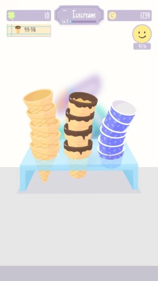 6、点击顾客的手部,把制作完成的冰淇淋递给顾客。