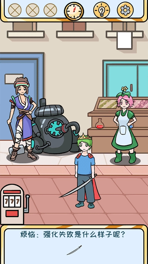 1. 点击左下角的机器,获取超级黑钻,将超级黑钻给主角用。接着点击右边的药剂商人,把商店界面向上拉动,选择购买装备破坏药剂。之后点击左边的强化师,把武器放入左边的框中,再把装备破坏药剂放入中间的小框里,最后点击开始。