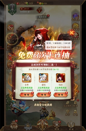 创建角色立即赠送100次连抽,助力玩家免费获取全套SSS级英雄。