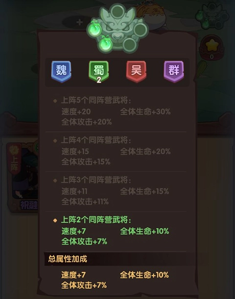 3、武将阵营彼此间存在羁绊关系,激活羁绊可获取额外属性,提升队伍战力。