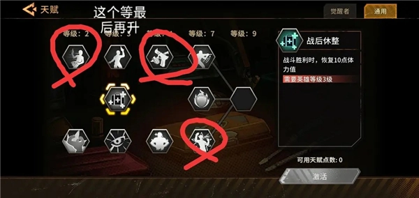 最后,说一下技能加点顺序。二级、三级、四级的时候加觉醒者技能,五六级则加通用技能。这里要注意,通用技能的第二列先不着急加,留到最后再加,添加方式随意,按照个人喜好来就可以。