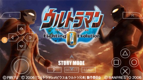 安装《奥特曼格斗进化0》中文版手机版之后,点击进入游戏。在首页,利用左侧的上下箭头挑选模式,接着在右侧的圆圈按钮上进行确认。