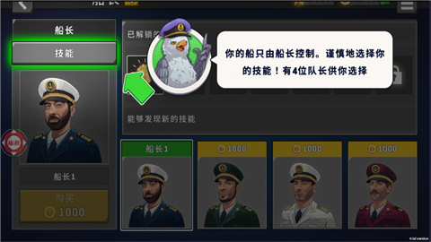 3、选择心仪的船长,即刻扬帆启航!每位船长都身怀独特技能,让你在航行途中事半功倍!