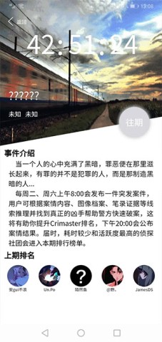 Crimaster侦探也被叫做侦探联盟,Crimaster作为一个推理侦探社区,无疑是当下谜题爱好者的乐园。其前身便是侦探联盟,改进之后,充分满足了侦探迷们对于案件推理的渴望。在该平台上,你不但能获取案情简介、现场勘验、侦查线索、验尸报告以及死者信息等模块的详尽资料,还能够参与用户上传的真实案件讨论。这些要素相互配合,为玩家打造出一个极具沉浸感的推理环境,助力提升了多地的破案率。特别要提到的是,游戏排行榜的设定灵感源自经典电影里的著名侦探角色Q,紧接着还有唐人街神探和KIKO等人。这样的设置既还原了电影的魅力,又激发了玩家的竞争欲与参与感。