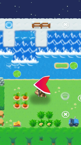 2. 协助动物角色抵达特定的目的地,采集胡萝卜、白菜、哈密瓜之类的农作物。