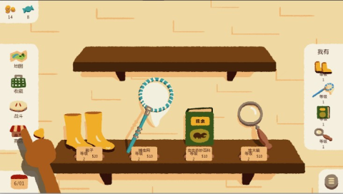 3、商店中的道具在捕捉昆虫方面助力颇大,按需购买就行。