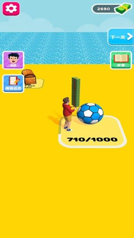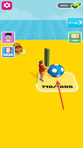 3、处于沙滩场景时,要留意将进度积累至【710/1000】,积极与【足球】等道具展开互动。达成标准后,点击【下一关】以持续推进,毕竟挑战无处不在。