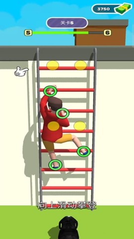 2、于【关卡5】里,依照指引向上滑动,借助角色的手脚抓住【梯子】的黄球,稳步攀爬向上,体会那成功的愉悦之感。