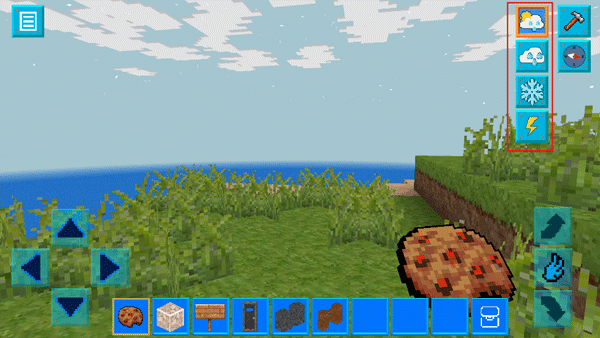 3、点击右上方的天气图标,就能对这个世界的气象进行调整,像闪电、雪花、下雨等,为你带来近乎真实的体验。