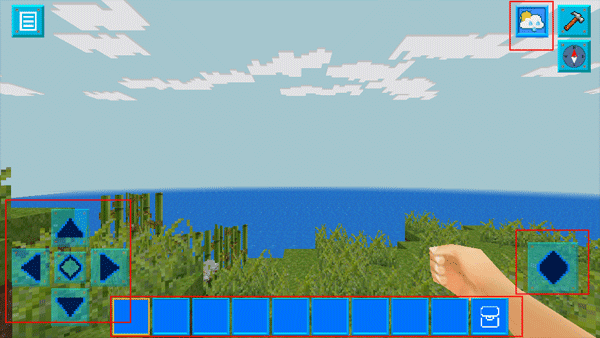2、在此处,我们选择创造模式,游戏界面左右两侧的按钮,分别显示的是移动方向键与跳跃键。