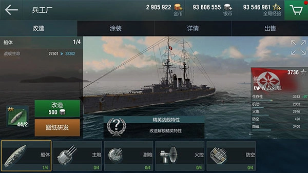 新战舰研发完成后,玩家能够借助改造战舰的方式提升战力。只需点击主界面上方的“兵工厂”按钮,就能进入改造界面。消耗图纸与银币,就可对目标部件展开改造。图纸可在战斗过程中获取,所以要多参与战斗以获得更多图纸,如此方能“越战越勇”。