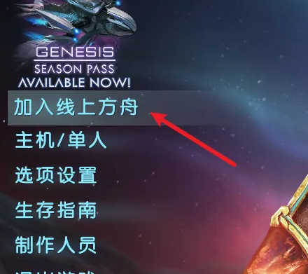3、随后,好友也需打开游戏菜单,选择“加入线上方舟”选项。