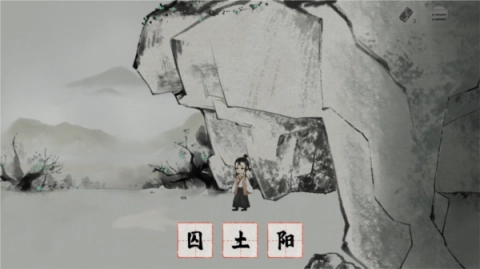2. 深入洞穴内部,找到囚犯,收集后得到“囚”字。接着返回洞口,向左移动到土堆所在位置,把“土”字收集起来,与此同时留意上方,获取“阳”字。