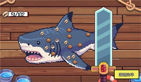 4、通过点击右上角的按钮进入商店,购买道具来升级您的刀、钓鱼线以及鱼钩。