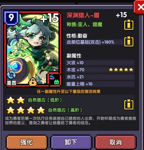 易伤:这是计算伤害时的一种增益乘数,与总伤、技能伤以及元素伤害增益的效果有所不同。和其他针对勇者自身的增益相比,易伤效果属于作用于敌方的负面效果,会让敌方所受伤害增多。由于能产生易伤效果的来源较少,故而其收益颇高。