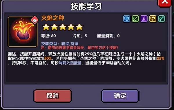 点燃:令目标每秒承受武器伤害的220%,且受到的火属性伤害提升2%(最高提升至30% ,状态共享但加伤不共享)