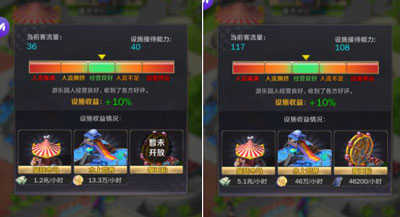 设施盈利所获收益,需接待能力与客流量成正比,并非单纯客流量越多就越好。多数玩家都会遭遇人流拥挤的状况,此时就需要升级主题雕像以提升接待能力,或者从服务中心的服务人员中选派经营能力强的人员来提高接待能力。
