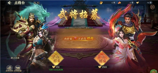 1. 玩家进入游戏后,能够前往点将台开展武将招募活动。