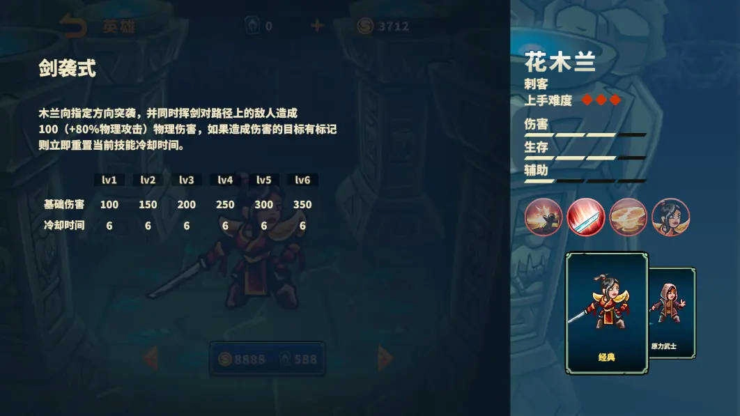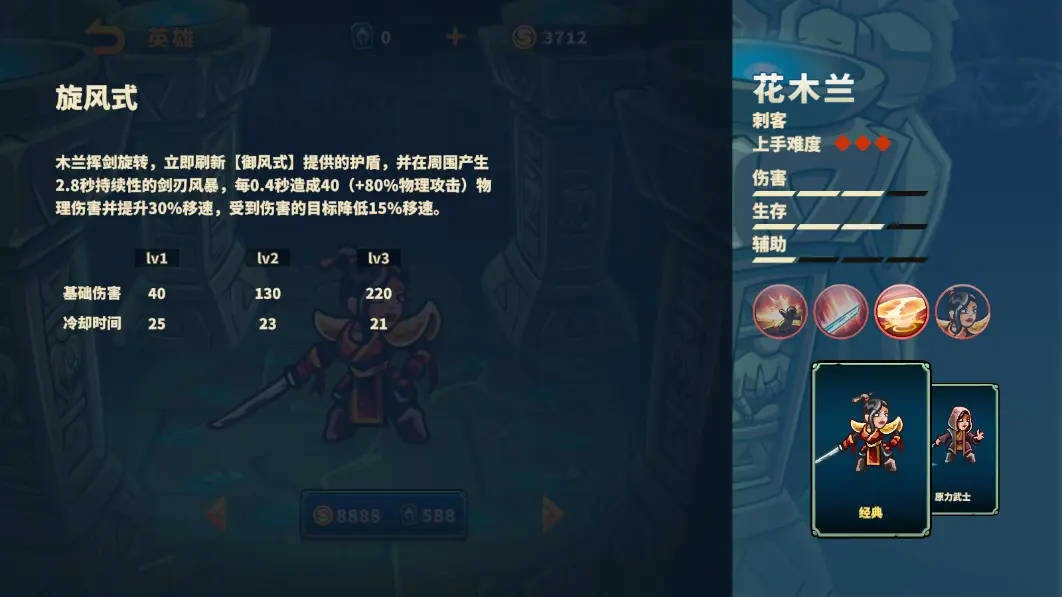 花木兰属于刺客型英雄,具备出色的伤害输出与生存能力,且机动性极佳。
