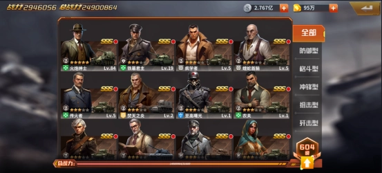 1完成引导就能开启英雄系统,英雄总共分为5种战车类型,即防御型、格斗型、冲锋型、狙击型、歼击型,每种战车类型都具备特定的特性与效果。