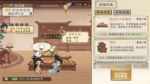 3、另外,点击设施,可以对店内各类设施进行升级与解锁。提升设施等级,不但能使你的经营效率更高,还能让你获取更多收益。
