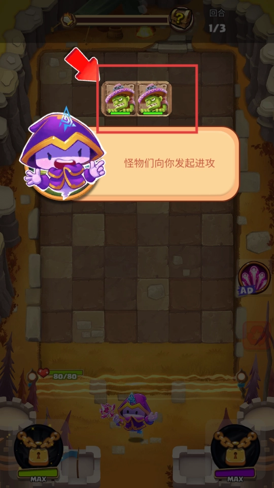 1. 踏入战斗场景,留意怪物所处位置,做好迎接进攻的准备。