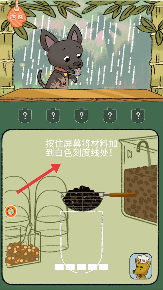 2、跟随提示“按住屏幕”,将材料添加至白色刻度线处,控制用量。