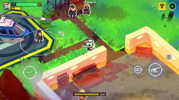3、结识新伙伴,他的一举一动皆与你同步,通过摇杆瞄准目标。