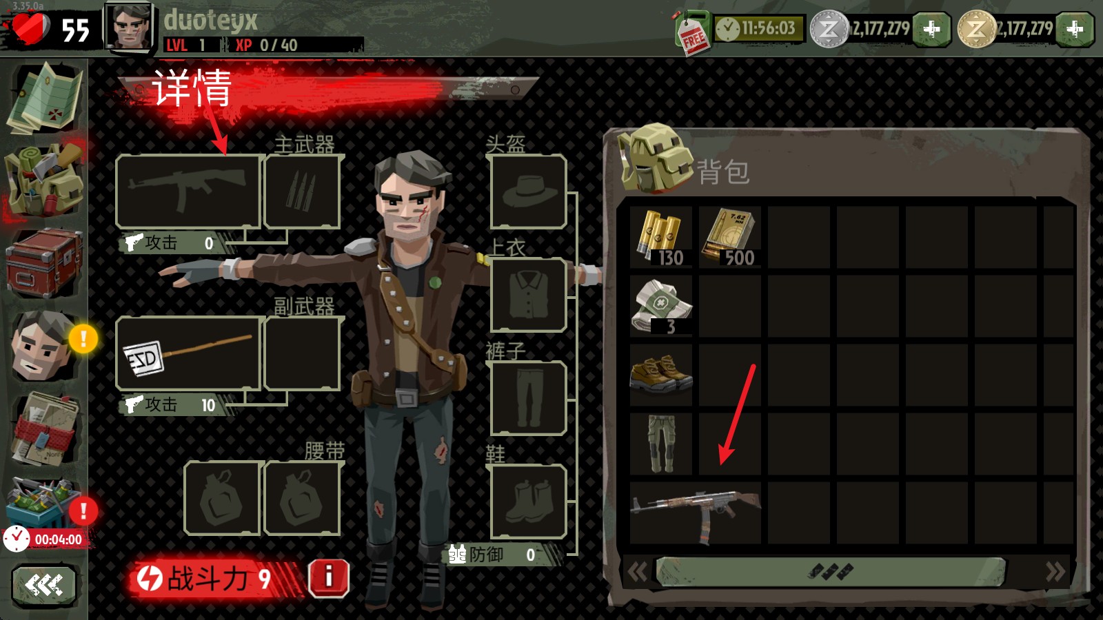 3、轻点右下角的背包图标,于背包界面内即可完成武器的装备操作。