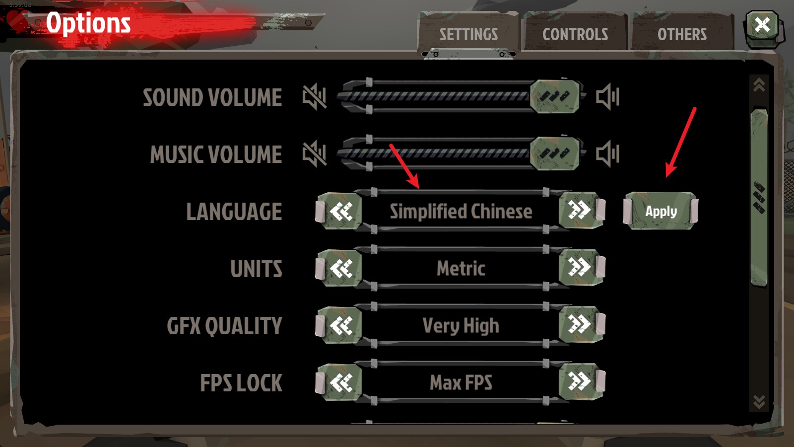 2、进入之后,在language这一栏,点击箭头,找到“简体中文(Simplified Chinese)”,接着点击“Apply”,即可成功切换。