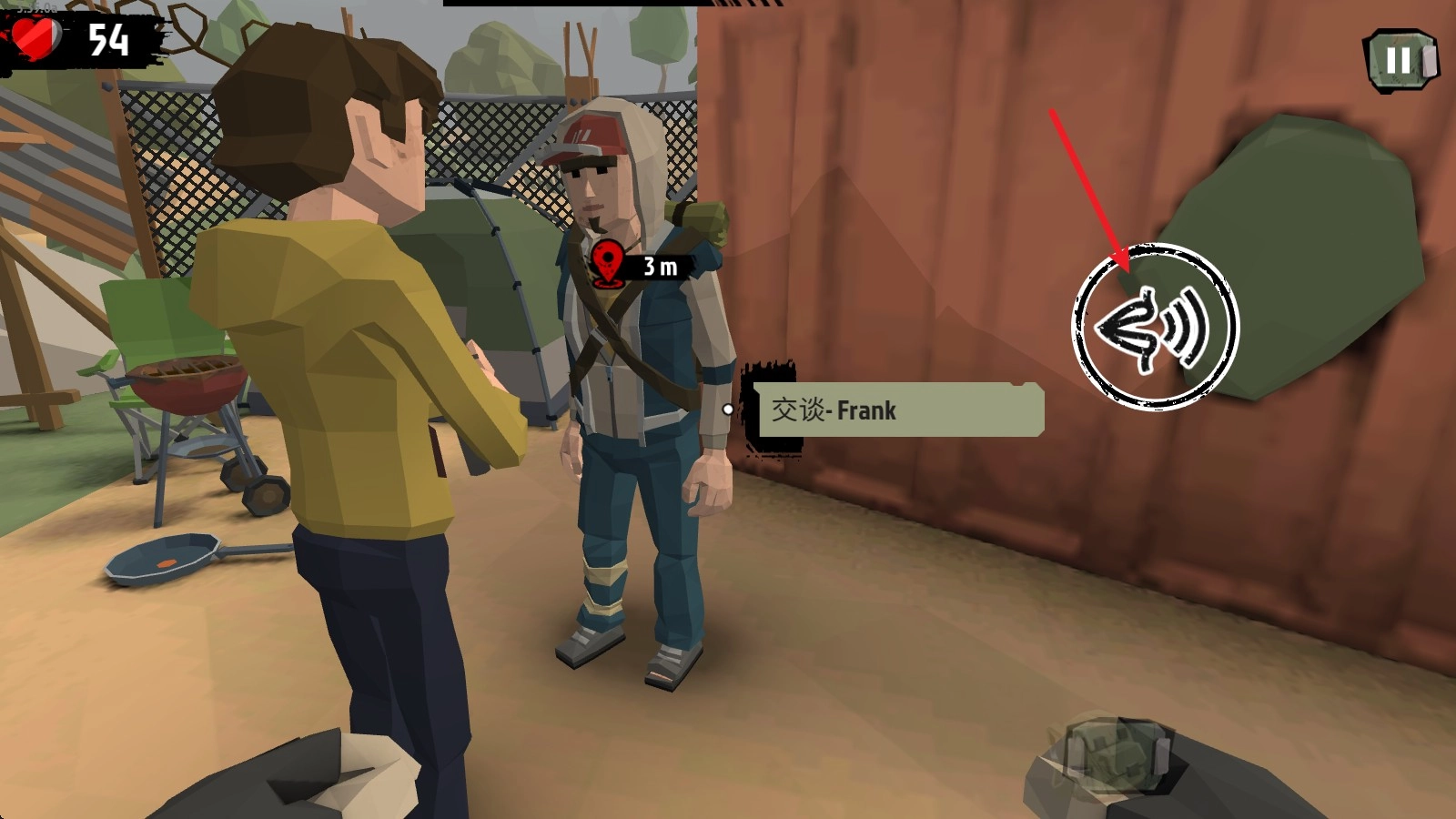 2. 当靠近指定的任务目标时,右侧便会出现交互按钮,点击该按钮就能进行交互。