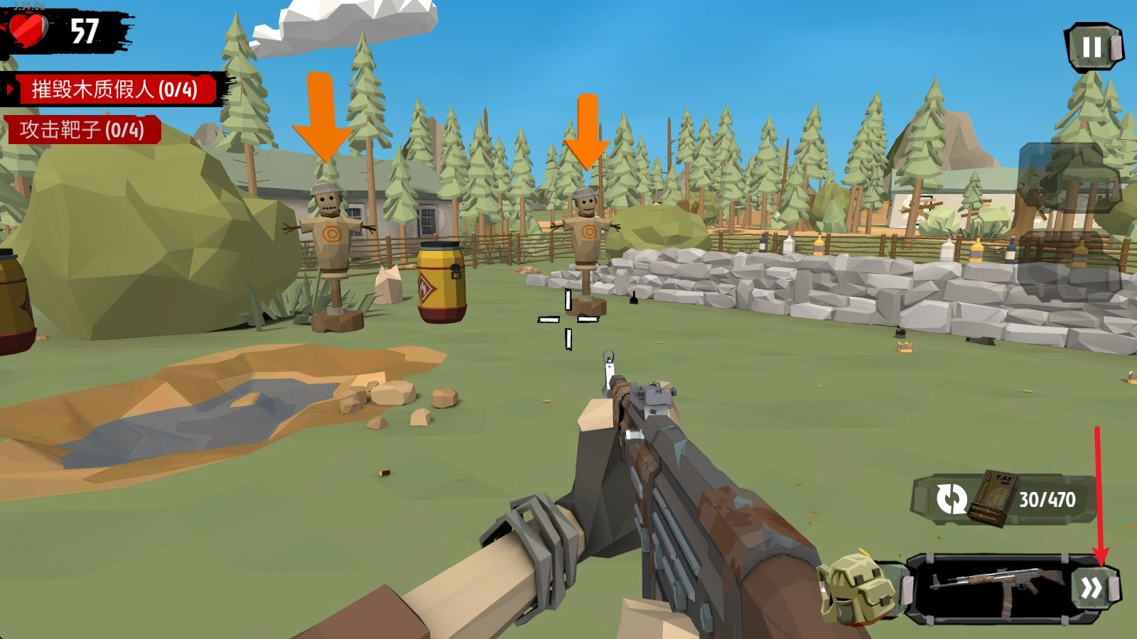 5、当我们拿起武器,瞄准敌人,接着点击右侧屏幕,就能展开射击。