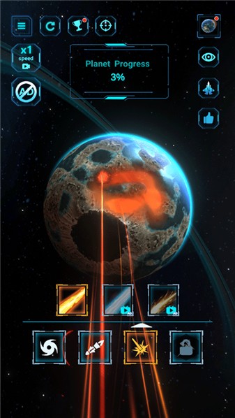 2. 进入游戏之后,玩法极为简单,玩家需借助下方的激光和道具来摧毁星球。