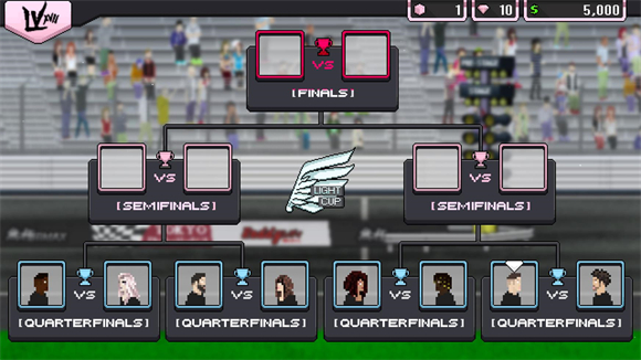 2、点击“race”后,点击左下角位置,便能选择不同的比赛模式。