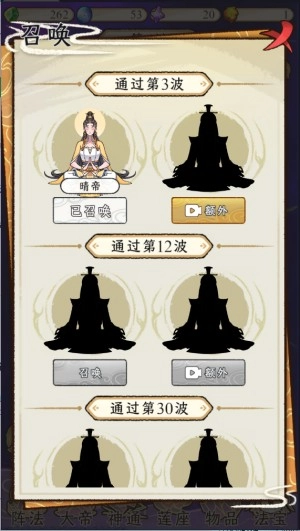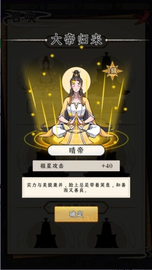 7、顺利通过第四关后,即可解锁召唤功能,届时便能召唤出更多的大帝。