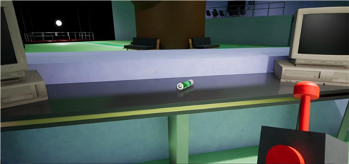 4、拿起遥控器,对准红色按钮进行撞击,随后门便会打开,这样就能前往另一个房间。