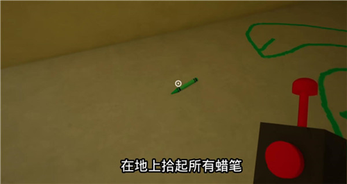 6、接下来,先把地面上的蜡笔都捡起来。这些蜡笔很好找,它们掉落的位置相当集中。