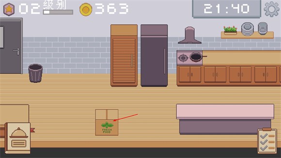 7、回到厨房后,点击箱子,就能获取采购来的食材。