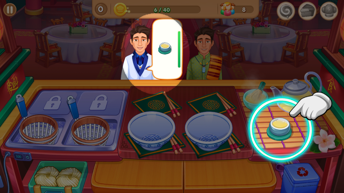 7、每位顾客在用餐结束后都会支付金币,玩家只要收集到足够数量的金币,就能顺利通关,并且在顺利通关之后,还能够获得奖励。
