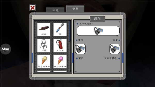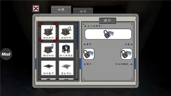 3、你能够点击提示,以此了解游戏里的玩法技巧,比如:如何破坏锁具从而强行开锁等。