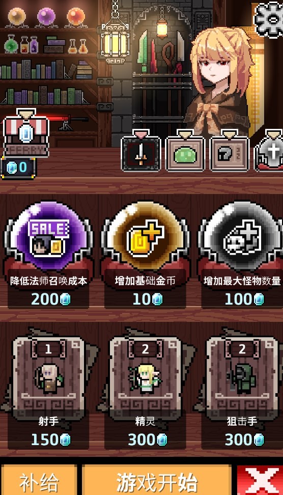 3、随后会进入补给界面,一开始由于没有蓝宝石所以无法购买,此时直接点击开始游戏即可。