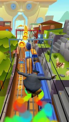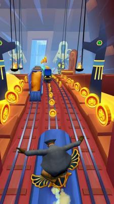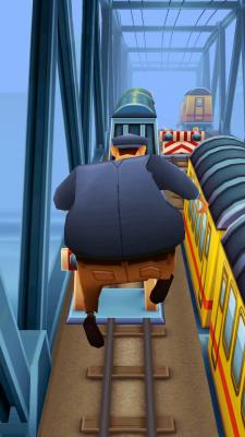 在进行跑酷时,务必躲开地铁大叔对你的追逐。