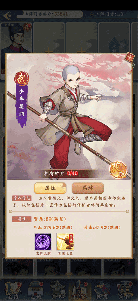 在正常的橙色门客里,可围绕府尹包拯来进行搭配并安排上阵。于聚贤阁中兑换所得的门客,彼此之间也都存在着羁绊。